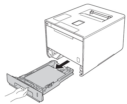 NOTE: If you print on envelopes, pull down the envelope levers (2) to the envelope position again before closing the back cover. 5. Print the document you were printing. If problem continues, continue to next step. 6. Check that paper is loaded into the paper tray correctly. a. Pull the paper tray completely out of the machine and remove the paper from the paper tray.