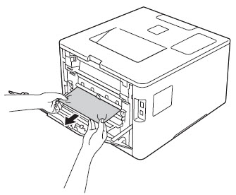 If the printed pages wrinkle or crease, follow the steps below. 1. Open the back cover. NOTE: After you have just used the machine, some internal parts of the machine will be extremely hot. Wait for the machine to cool down before you touch the internal parts of the machine. 2. Pull the blue tabs at the left and right sides toward you and fold down the fuser cover.
