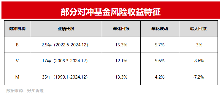 2022年,全球股市一片惨淡,标普500指数暴跌近20%,而对冲基金却逆势上涨,平均收益率超过8%,在低迷的市场中显得格外亮眼。 对冲基金如何穿越市场波动? 2024年,全球知名的三大多策略对冲机构Citadel、Point72、Millennium均取得了超15%的收益,表现亮眼。 以我们关注的三家全球对冲机构为例,三家机构的历史年化回报均在10%以上,年化波动在5%左右,最大回撤不到10%。当前投资环境下,可见其性价比与吸引力。