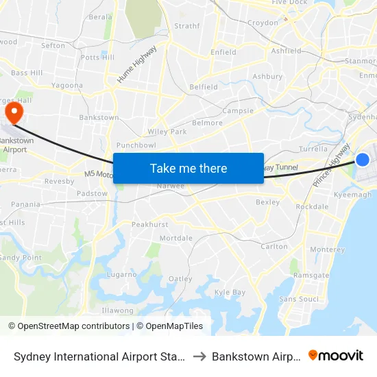 Alternative route from Sydney International Airport Station to Bankstown Airport by bus and train via T8, 923 and 905To get from Sydney International ...