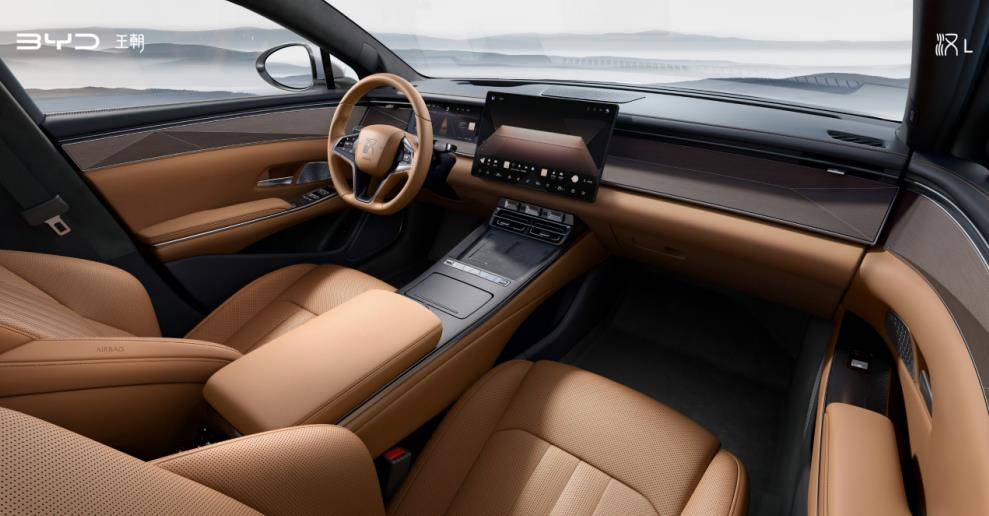 这样的差异风格还延续到了内设设计上,汉L采用的悬浮式中控屏+液晶仪表,配合上竹木饰板融合切割形面,总体来看还是保留了上代汉成熟稳重的风格,不过可能年轻用户对于这样的设计就不太感冒了,小米SU7上那套旋转仪表盘+悬浮式中控大屏,加上各色的氛围灯营造出的科幻感,或许更对年轻人的胃口。